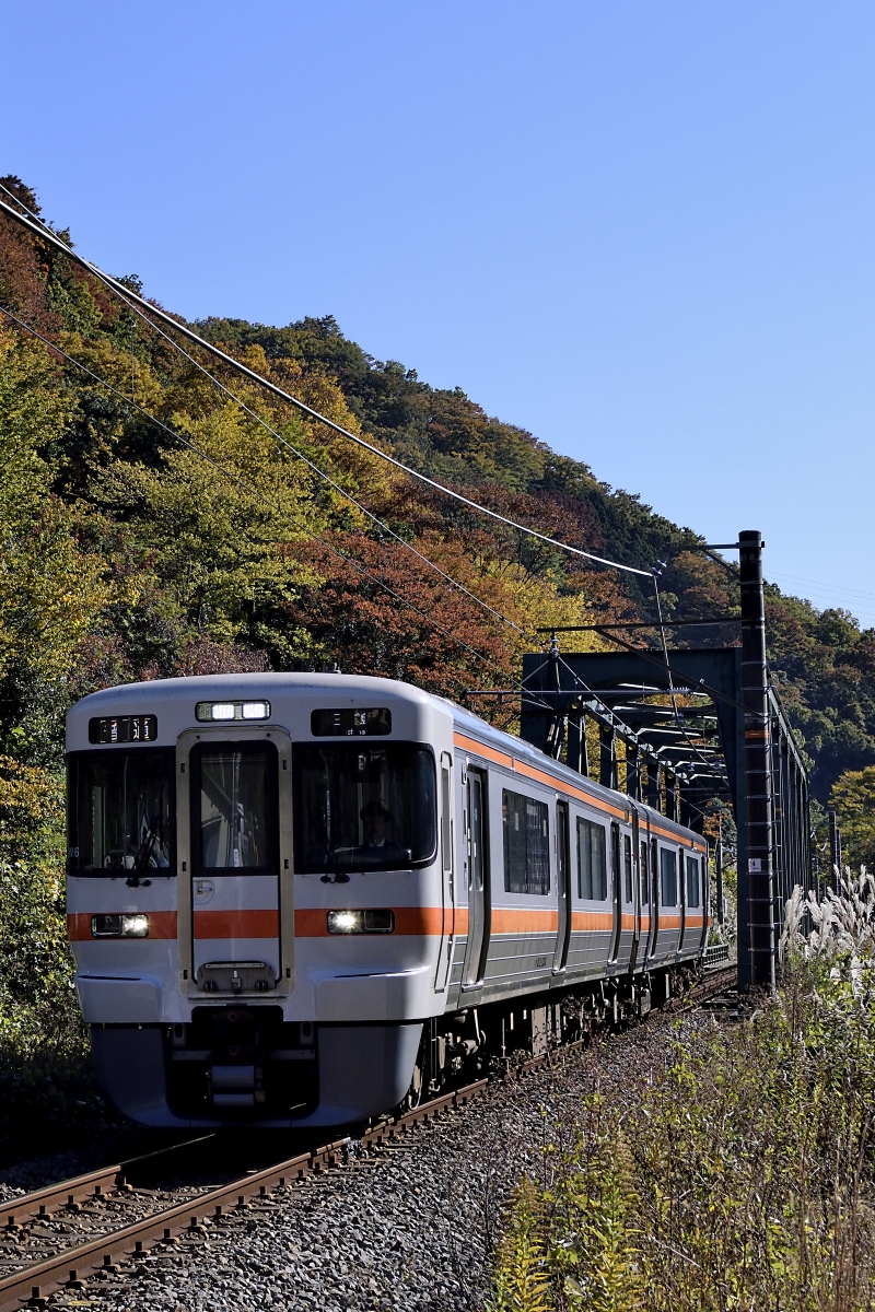 同じく313系を、反対側にある橋梁トラスに入れて撮影。