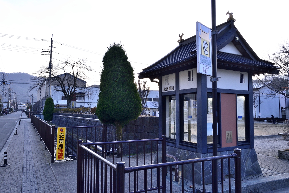 陣屋の並びにあった公園には、今どき珍しい電話ボックスが。